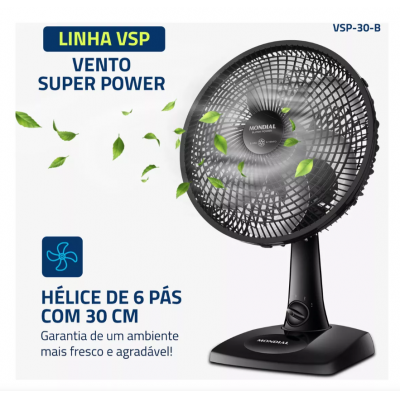 Table Fan 30cm Super Power Mondial Black 60W 6 psis VSP-30-B-127Ventor Table 30cm S