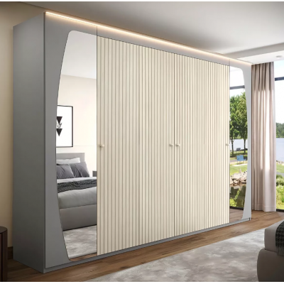 Hardwater wardrobe with ripped effect, mirror and LED 6 doors 6 drawers