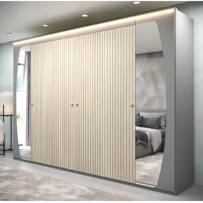 Title page > Furniture > Furniture > Hardwater wardrobe with ripped effect, mirror and LED 6 doors 6 drawers