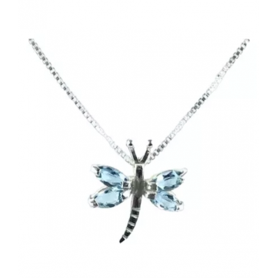 Dillola Pendant Natural Marine Water 4x8 Silver + Cordao