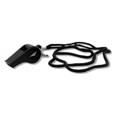 We present the black Plastic Plastic Sports whistle, the ideal choice for referees and coaches seeking practicality and efficiency. With a light and compact design, this whistle is easy to transport and use in any situation. Equipped with a cord, it ensures that you do not lose it during the match, always keeping it within your reach.