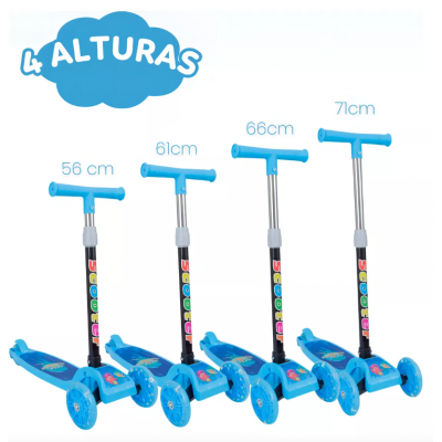 The 3 -wheeled children's scooter is the perfect choice to ensure moments of fun and safety for boys and girls. This scooter is folding, facilitating transportation anywhere. With a rubberized handlebar and security wheels on the front, it offers more stability and balance for the child during use.
