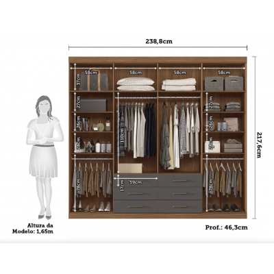 Wardrobe with Master Mirror 8.6 Santos Andirá Color Jatoba/ Grafitte